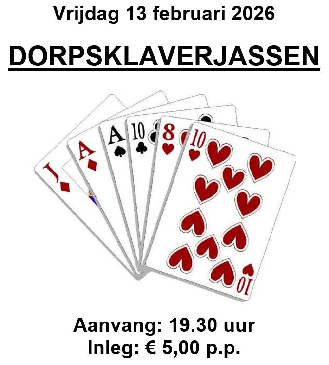 Aankomende vrijdag, 13 februari 2026, gaan we weer Dorpsklaverjassen!!!