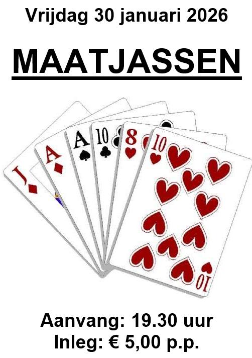 Aanstaande vrijdag, 30 januari 2026, gaan we weer MAATJASSEN!!!