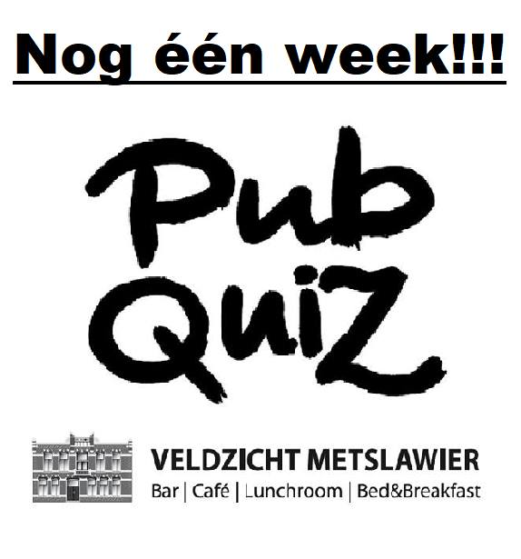 Nog maar één week!!! Volgende week zaterdag 10 april 2026 is het weer tijd voor de PUBQUIZ in Veldz…